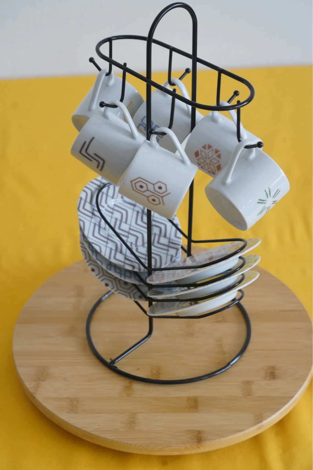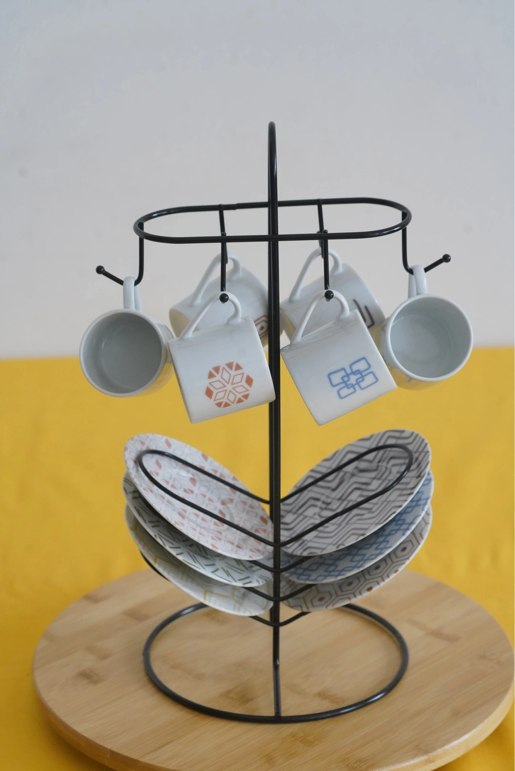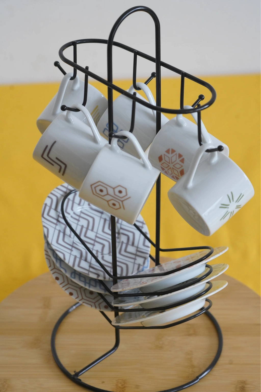 Askılı Fincan Standı, Fincan Askılığı, Siyah Fincan Standı 6'lı kahve fincan standı, genellikle kahve fincanlarını düzenli bir şekilde saklamak veya sunmak için tasarlanmış bir mutfak gerecidir. İşte bu tür bir fincan standı hakkında genel bir açıklama: Kapasite: 6'lı kahve fincan standları, genellikle altı adet kahve fincanını veya kupa ve tabaklarını tutmak için tasarlanmıştır. Bu, kahve sunumu için idealdir ve misafirlerinize kahve içeceklerini düzenli bir şekilde sunmanıza yardımcı olur. Tasarım: Kahve fincan standları farklı tasarım seçeneklerine sahip olabilir. Bazıları metal, ahşap, seramik veya diğer malzemelerden yapılabilir. Ayrıca, farklı desenler, renkler ve süslemelerle kişisel tercihlere uygun bir stand bulmak mümkündür. Fonksiyon: 6'lı kahve fincan standları, kahve fincanlarını düzgün bir şekilde saklamakla kalmaz, aynı zamanda mutfak tezgahınızı veya masanızı düzenli tutmanıza da yardımcı olur. Bu standlar aynı zamanda kolay erişim sağlar, böylece fincanları hızlıca alabilirsiniz. Dekoratif Öğe: Birçok kahve fincan standı, mutfak dekorunuza katkıda bulunan şık veya estetik bir öğe olarak da hizmet edebilir. Bu nedenle, kendi tarzınıza uygun bir kahve fincan standı seçebilirsiniz. Taşınabilirlik: Bazı kahve fincan standları, taşıması kolay veya katlanabilir tasarımlara sahiptir, böylece ihtiyaç duyduğunuzda kolayca yer değiştirebilirsiniz. Bakım: Kahve fincan standlarının bakımı, malzemesine bağlı olarak değişebilir. Genellikle, standları temizlemek ve korumak için ılık sabunlu su kullanmanız yeterli olacaktır. Ölçüleri: 37x18