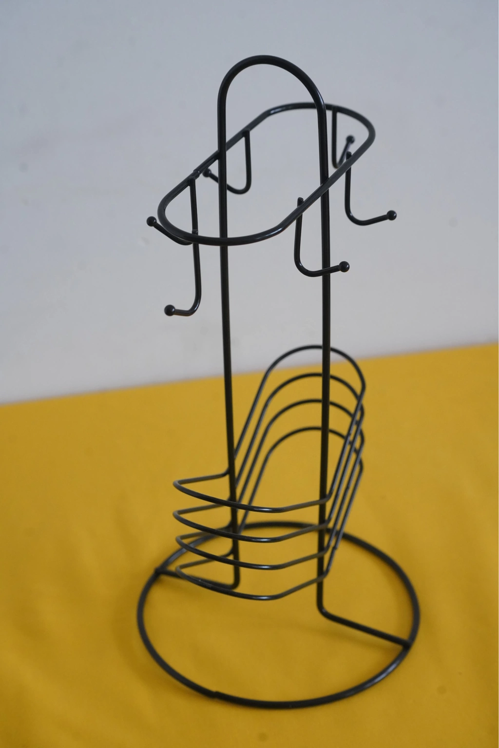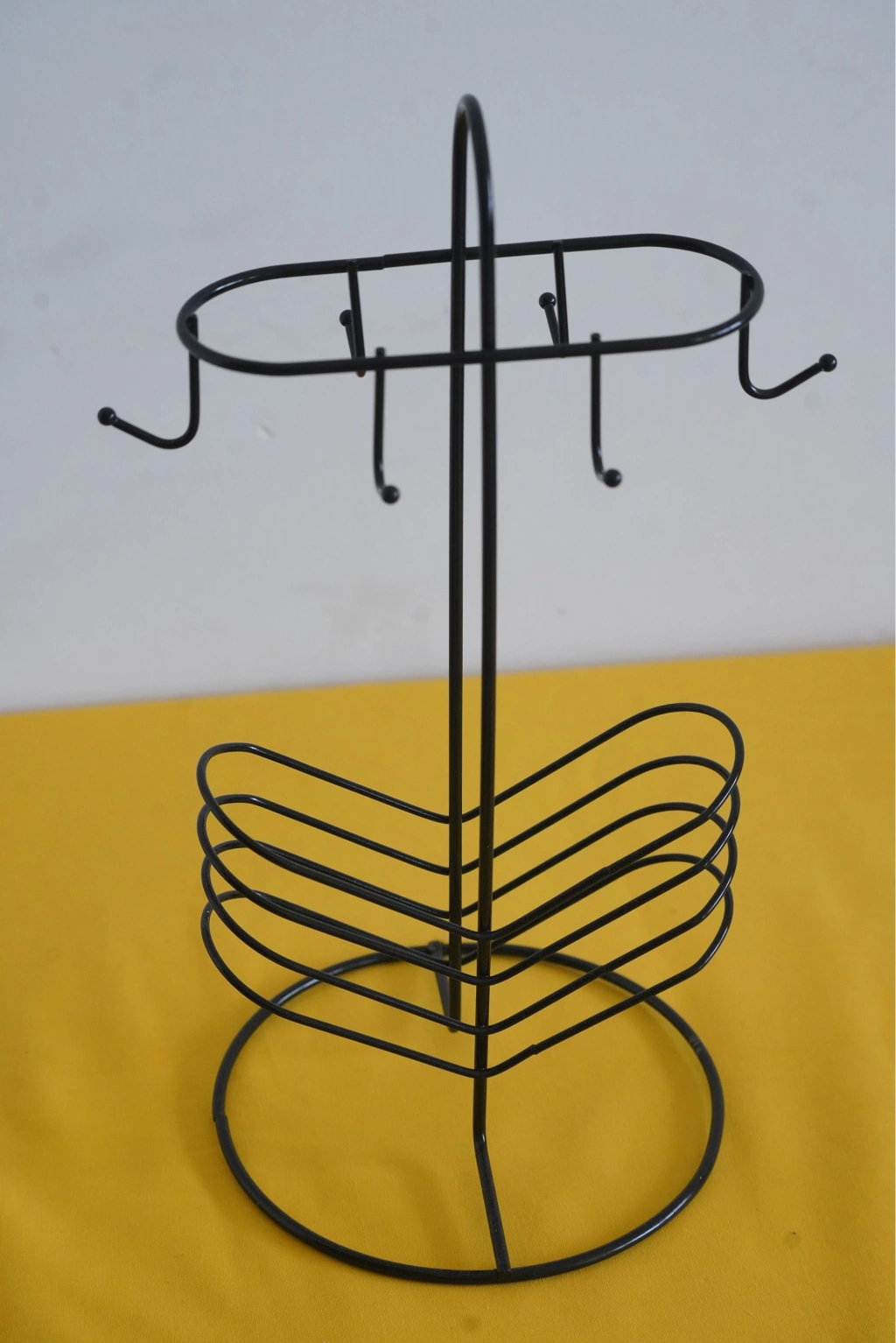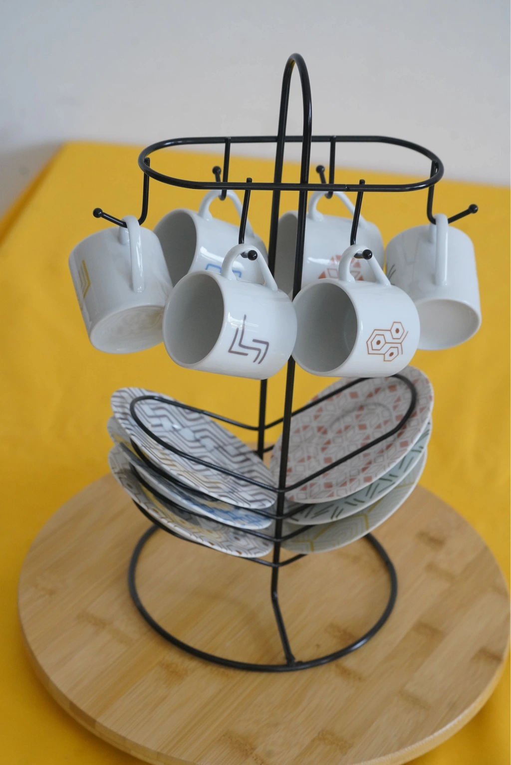 Askılı Fincan Standı, Fincan Askılığı, Siyah Fincan Standı 6'lı kahve fincan standı, genellikle kahve fincanlarını düzenli bir şekilde saklamak veya sunmak için tasarlanmış bir mutfak gerecidir. İşte bu tür bir fincan standı hakkında genel bir açıklama: Kapasite: 6'lı kahve fincan standları, genellikle altı adet kahve fincanını veya kupa ve tabaklarını tutmak için tasarlanmıştır. Bu, kahve sunumu için idealdir ve misafirlerinize kahve içeceklerini düzenli bir şekilde sunmanıza yardımcı olur. Tasarım: Kahve fincan standları farklı tasarım seçeneklerine sahip olabilir. Bazıları metal, ahşap, seramik veya diğer malzemelerden yapılabilir. Ayrıca, farklı desenler, renkler ve süslemelerle kişisel tercihlere uygun bir stand bulmak mümkündür. Fonksiyon: 6'lı kahve fincan standları, kahve fincanlarını düzgün bir şekilde saklamakla kalmaz, aynı zamanda mutfak tezgahınızı veya masanızı düzenli tutmanıza da yardımcı olur. Bu standlar aynı zamanda kolay erişim sağlar, böylece fincanları hızlıca alabilirsiniz. Dekoratif Öğe: Birçok kahve fincan standı, mutfak dekorunuza katkıda bulunan şık veya estetik bir öğe olarak da hizmet edebilir. Bu nedenle, kendi tarzınıza uygun bir kahve fincan standı seçebilirsiniz. Taşınabilirlik: Bazı kahve fincan standları, taşıması kolay veya katlanabilir tasarımlara sahiptir, böylece ihtiyaç duyduğunuzda kolayca yer değiştirebilirsiniz. Bakım: Kahve fincan standlarının bakımı, malzemesine bağlı olarak değişebilir. Genellikle, standları temizlemek ve korumak için ılık sabunlu su kullanmanız yeterli olacaktır. Ölçüleri: 37x18