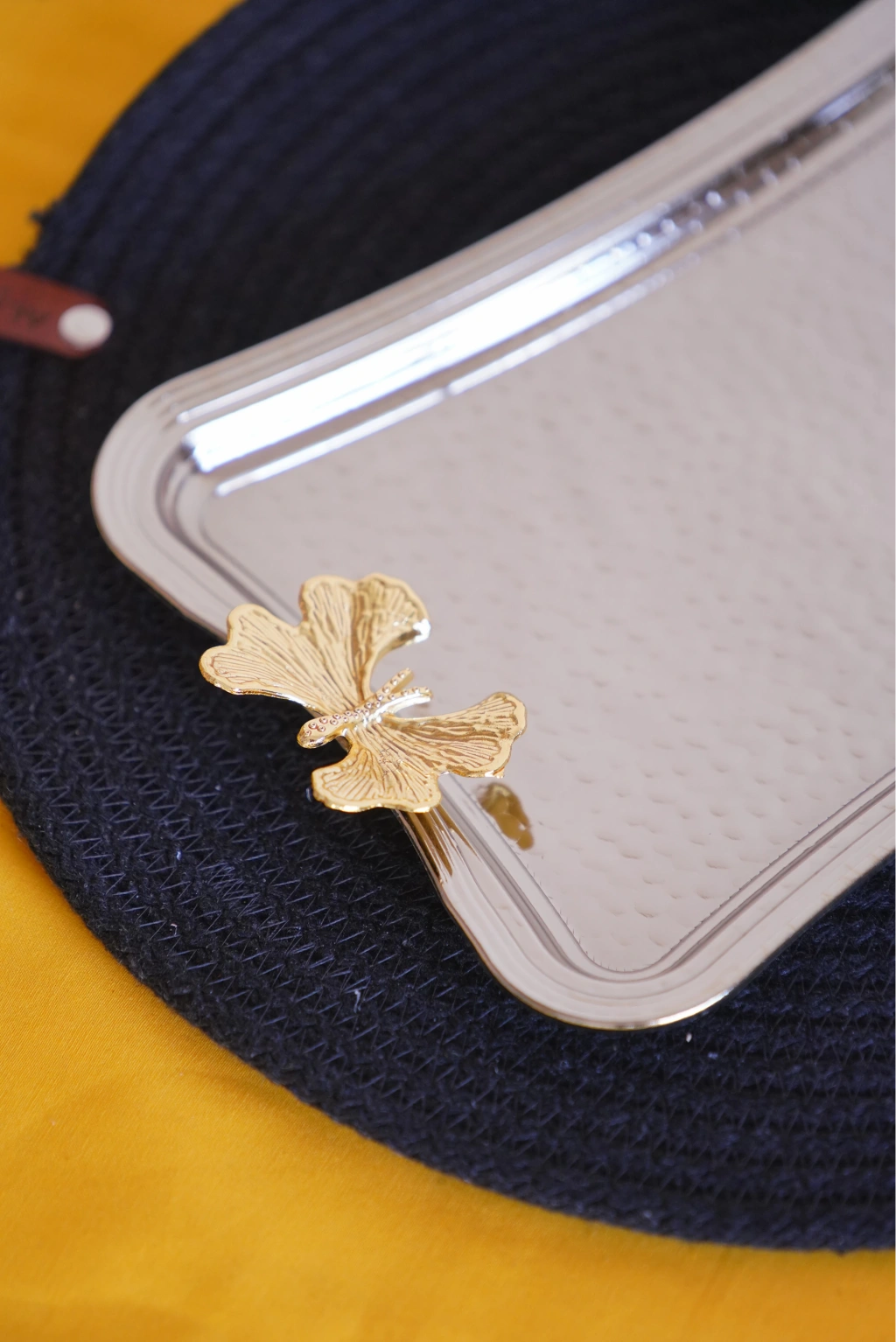 Cooker Yuvarlak Kelebek Desenli Gold Tepsi 25cm