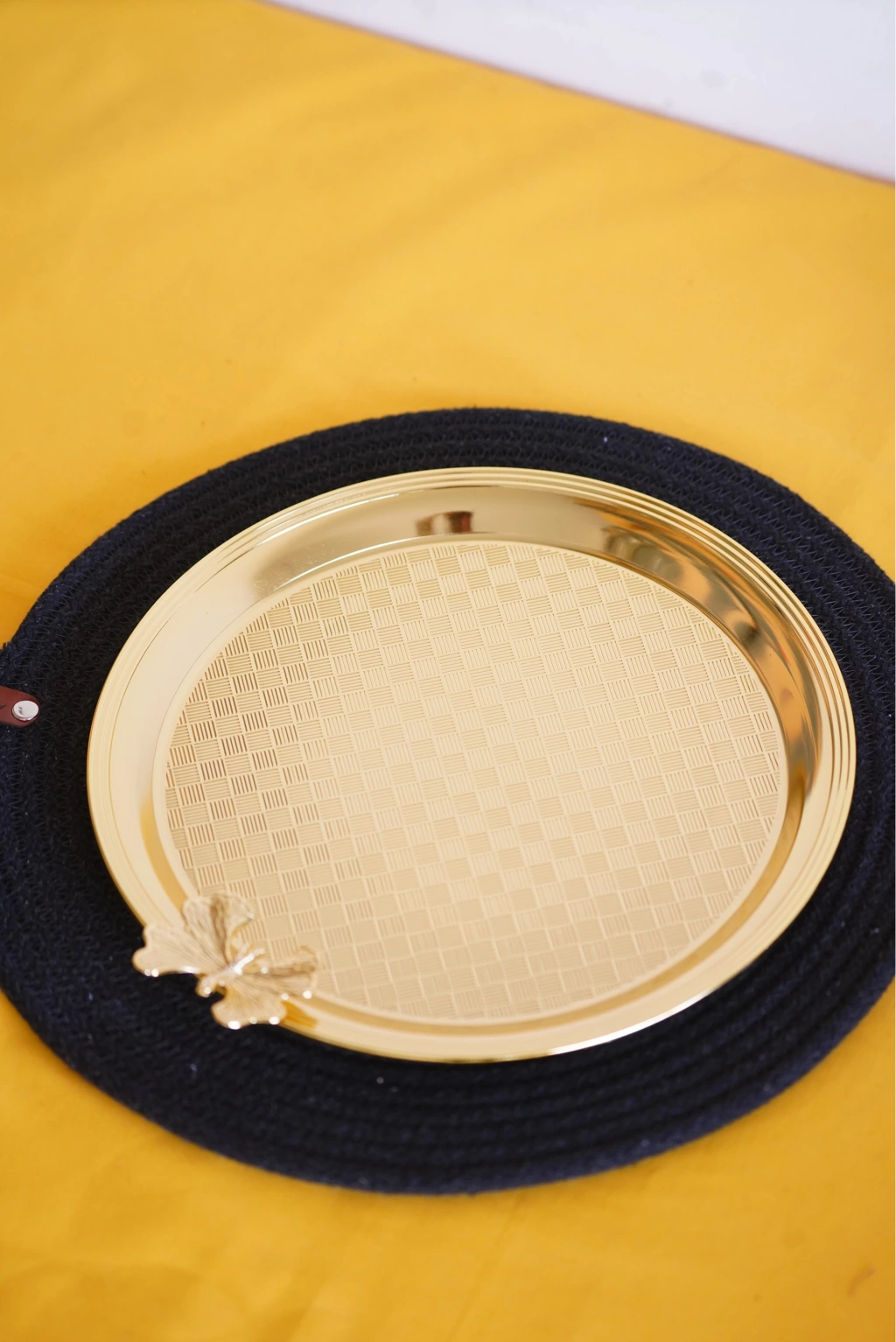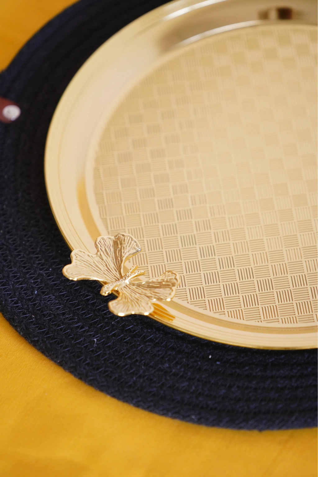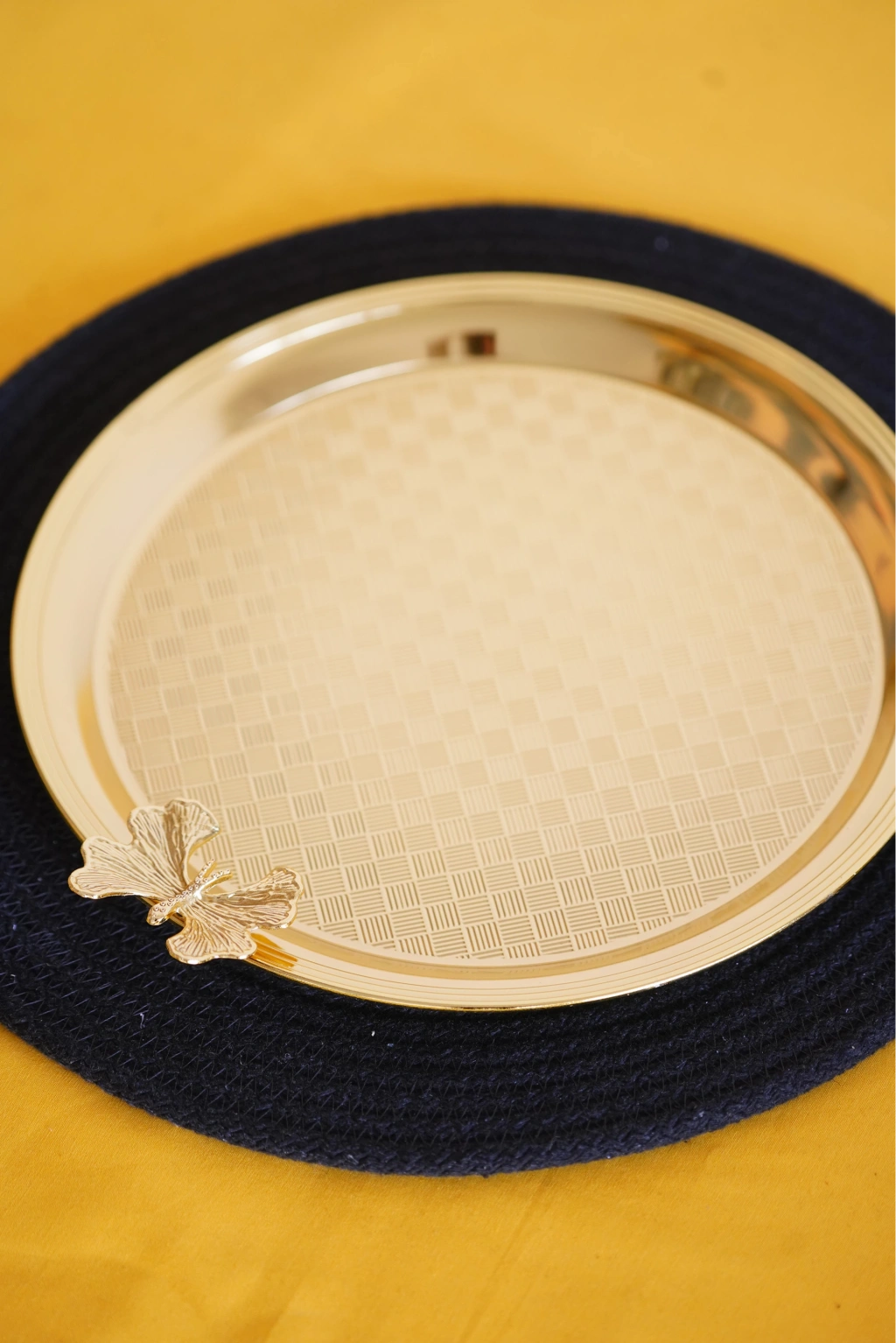 Cooker Yuvarlak Kelebek Desenli Gold Tepsi 25cm