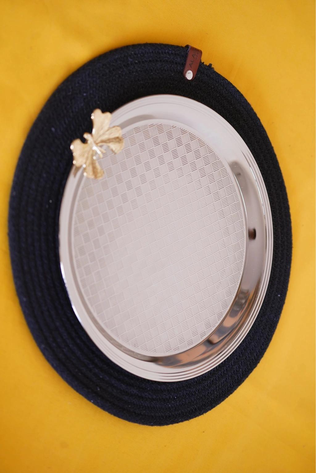Cooker Yuvarlak Kelebek Desenli Gold Tepsi 25cm