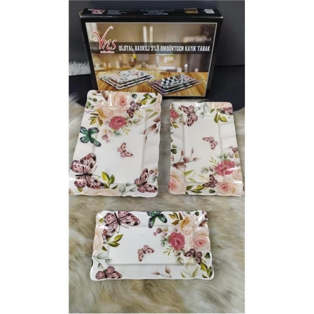 Dijital Baskılı 3'lü Dikdörtgen Kayık Tabak