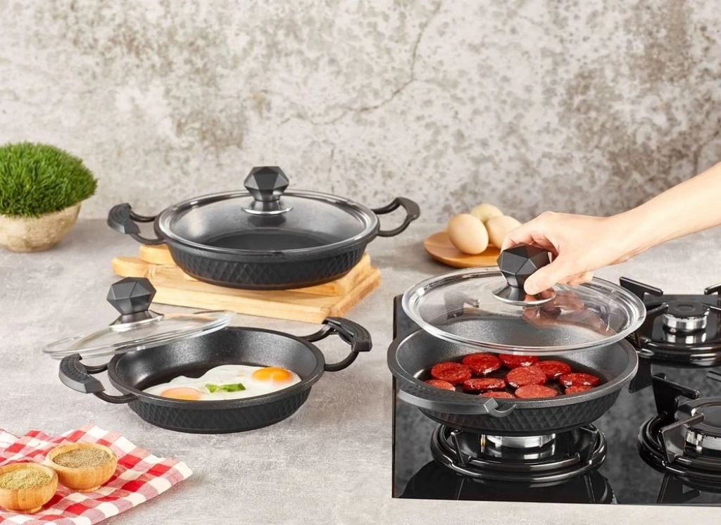 Kahramanlar Stone Black Titanyum Basık Tencere 28cm