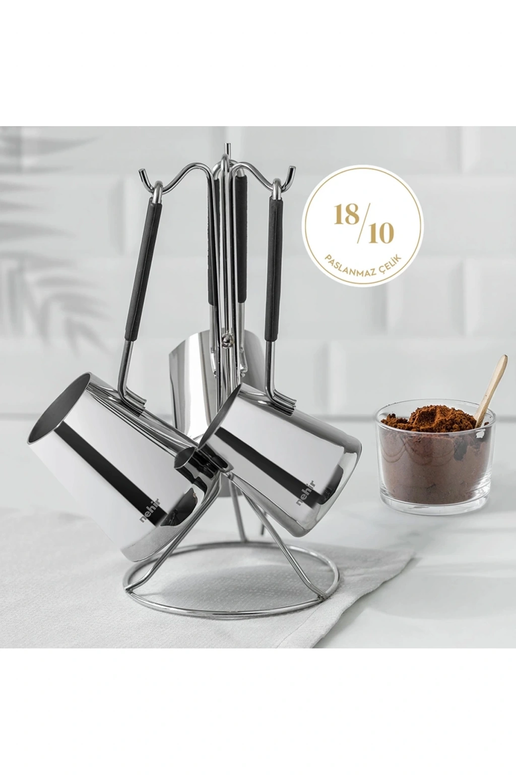 Dayanıklı ve Uzun Ömürlü: 18/10 paslanmaz çelik malzeme, cezve setinin dayanıklı olmasını ve uzun süre kullanımı sağlar.