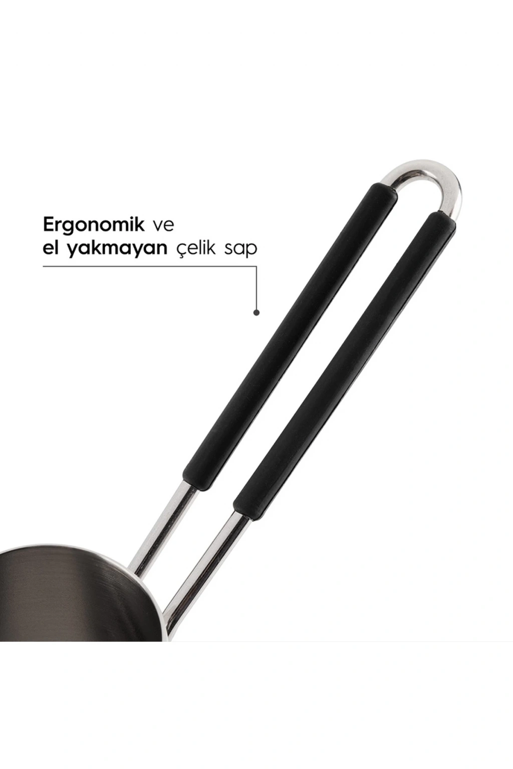 Rahat ve Güvenli Kullanım: Ergonomik çelik sap, sıcak cezveyle kullanımda konforlu ve güvenli bir deneyim sunar.