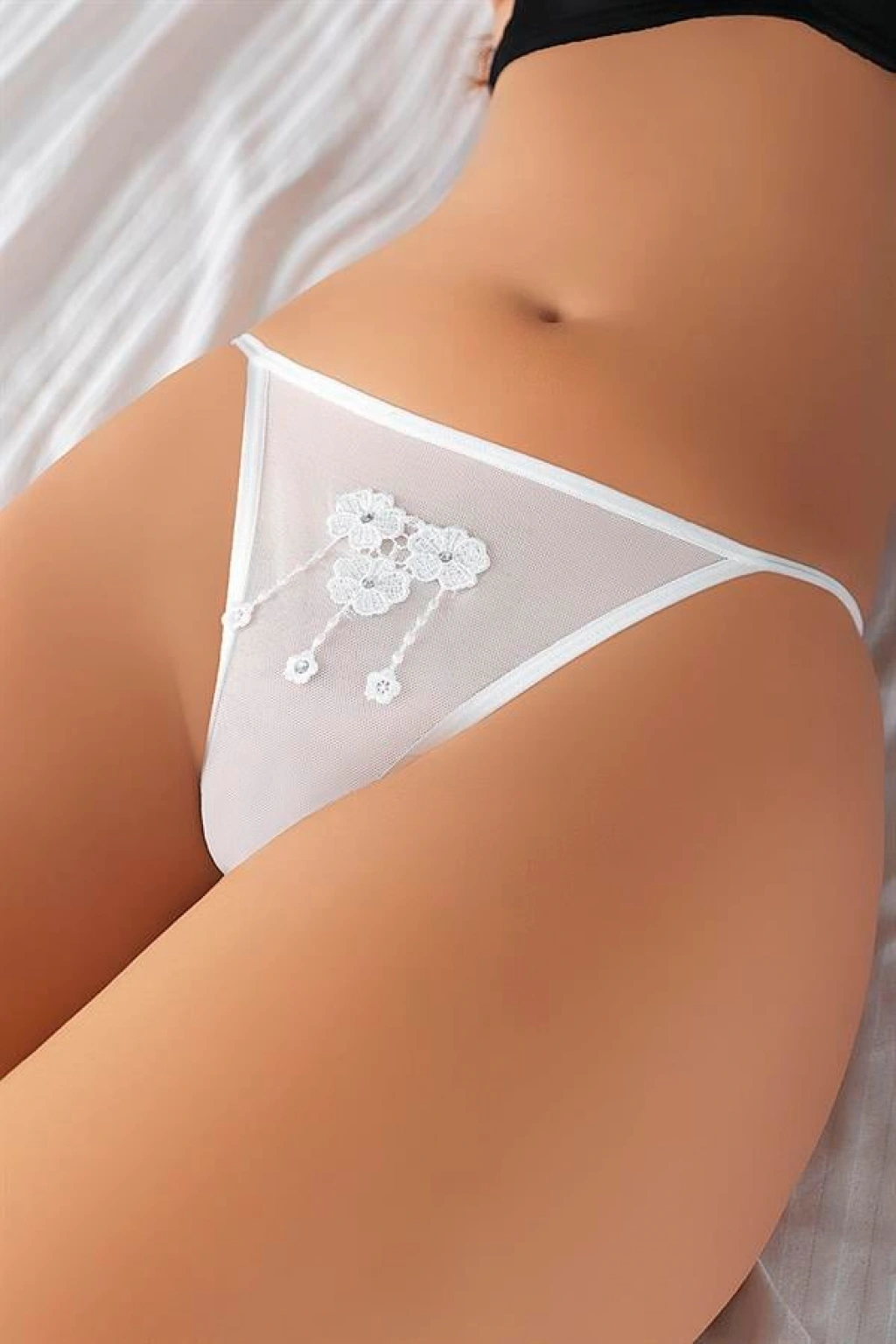 Will Like Fantezi Dantelli 2 İpli Beyaz Tanga String