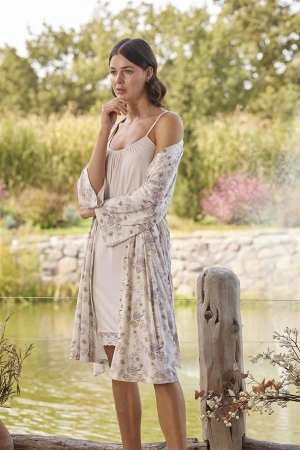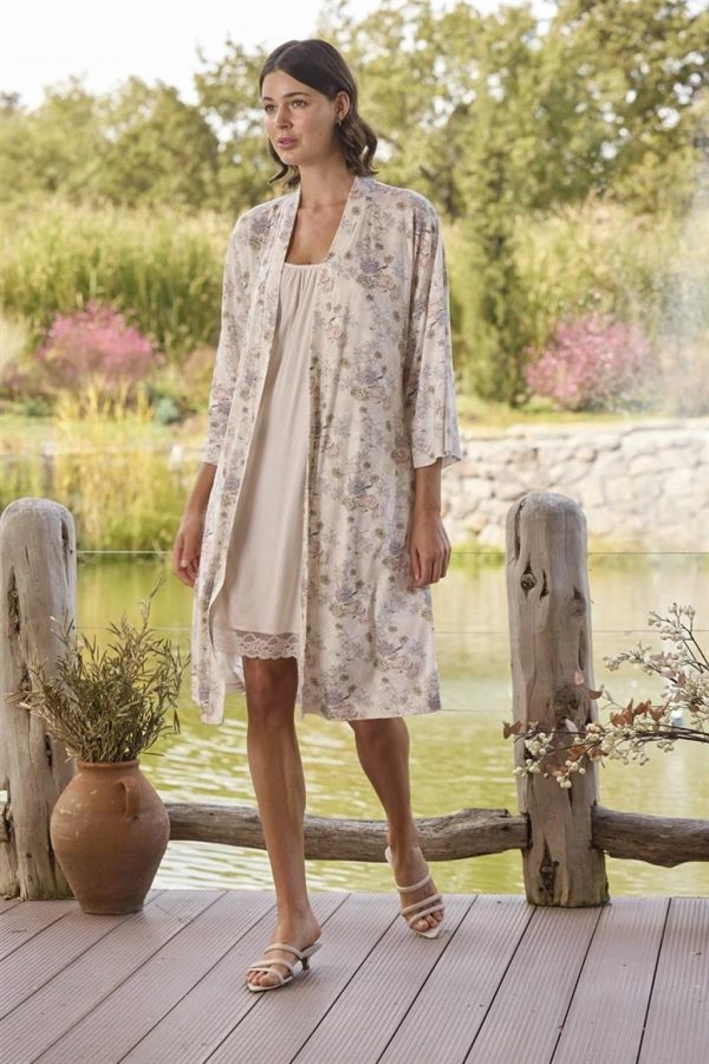 Will Like Çiçek Desenli ve Dantelli Sabahlık Takımı