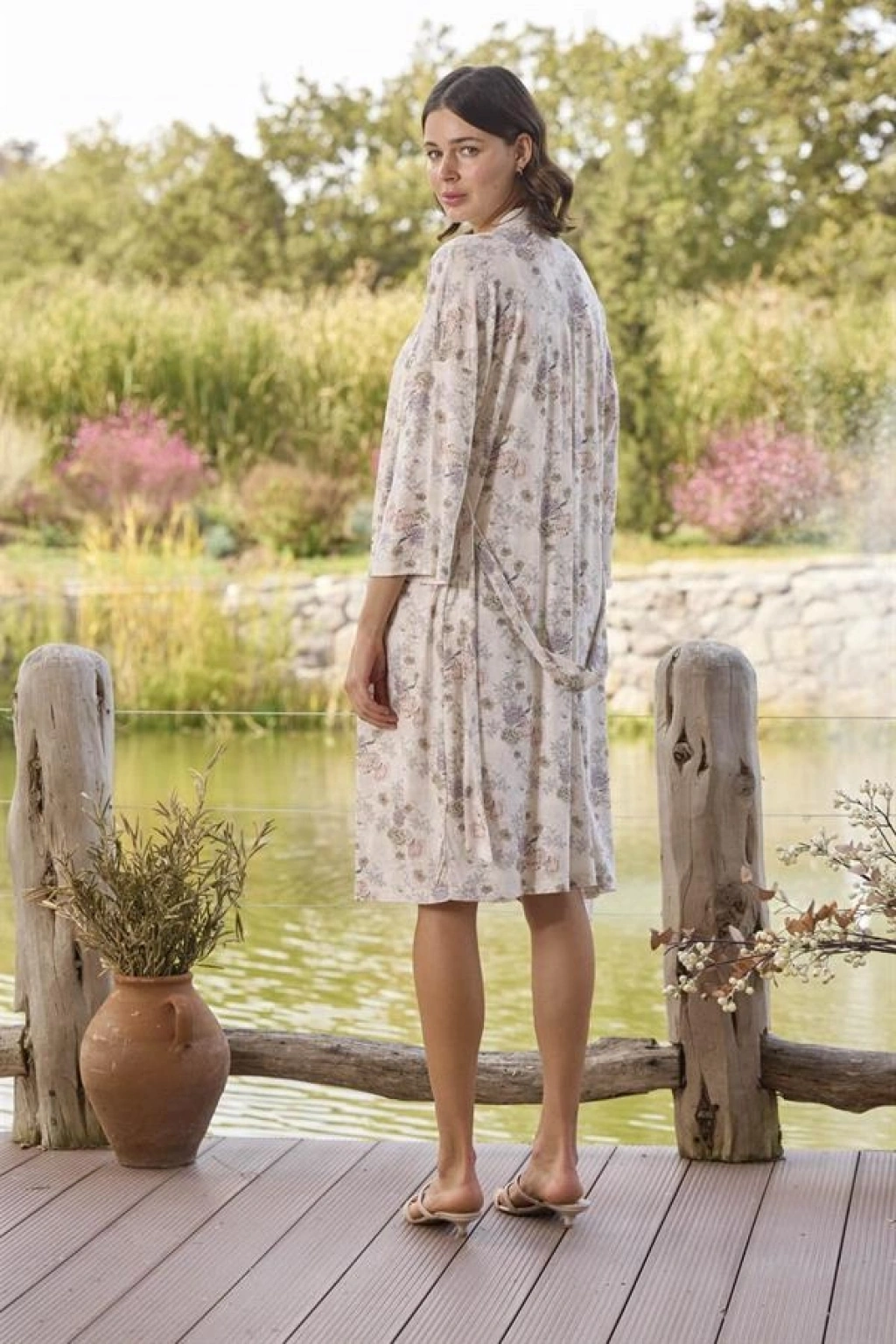 Sabahlık: Pembe zemin üzerine çiçek desenlidir, 3/4 kolludur, kuşaklıdır, örme kumaştır.