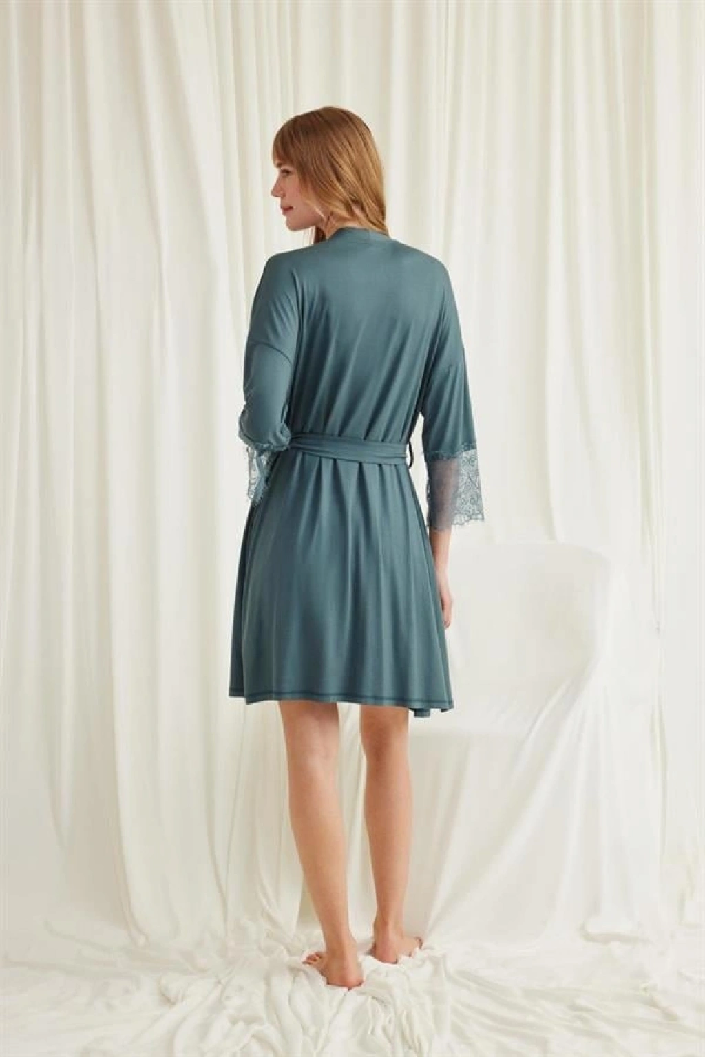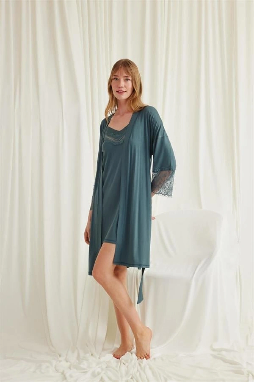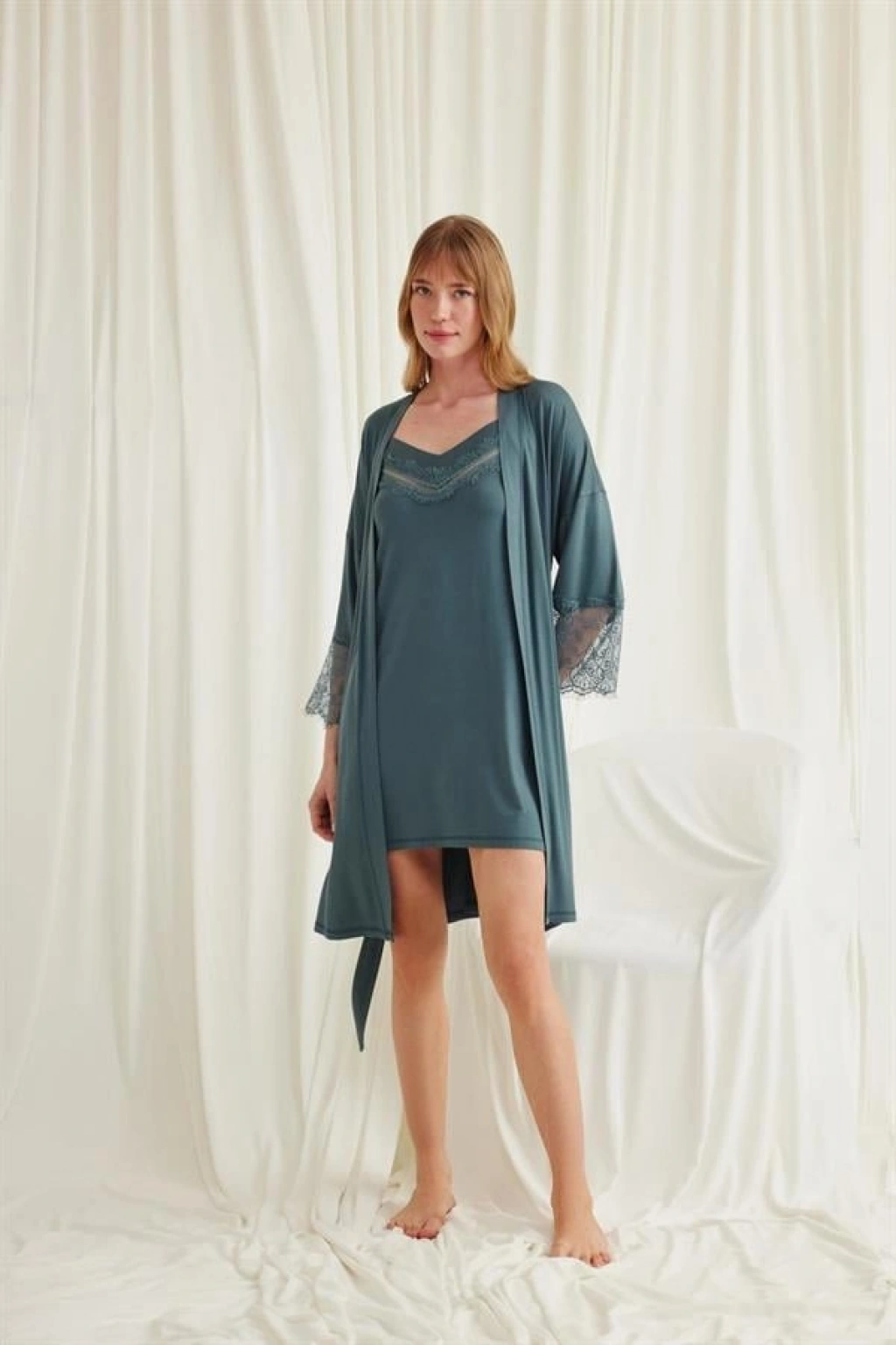 Will Like Dekolteli Yakası ve Kolu Dantelli Sabahlık Takımı