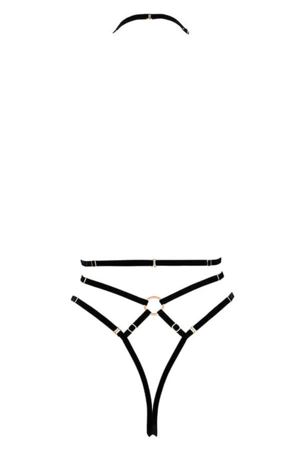 Aria's Closet Siyah Göğüs ve Bacak Aksesuarlı Fantezi Harness Set