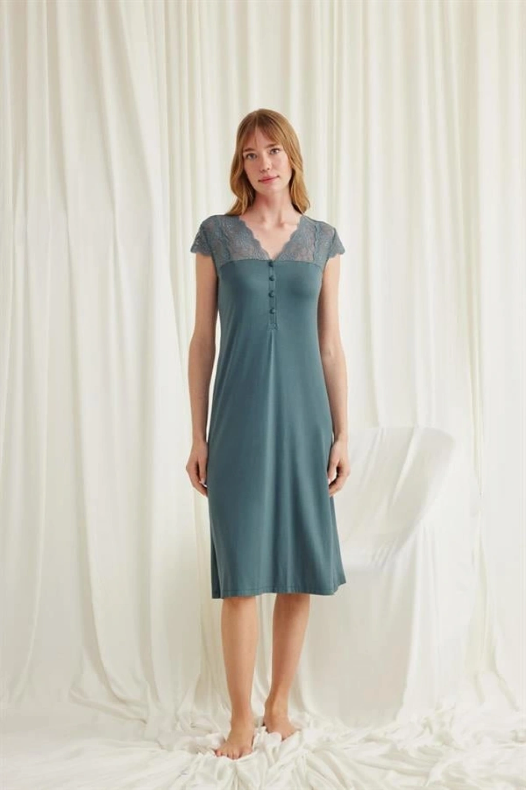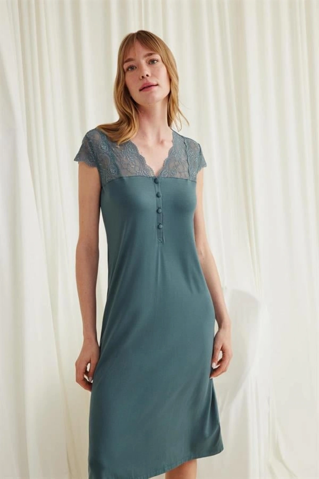 Will Like Kolu Omzu ve Yakası Dantelli Önü Düğmeli Gecelik