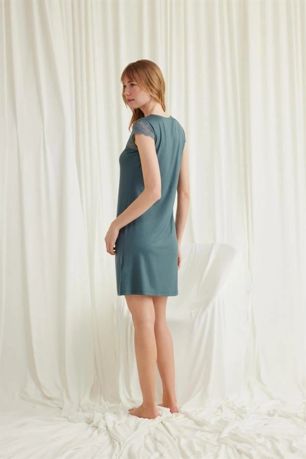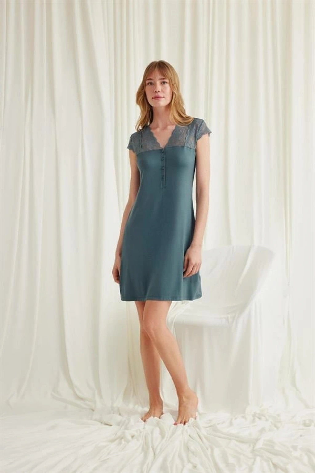 Will Like Kolu Omzu ve Yakası Dantelli Önü Düğmeli Gecelik
