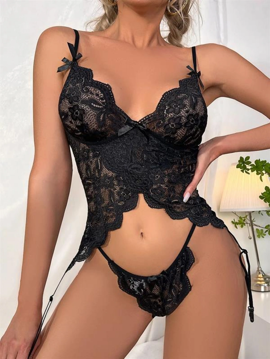 Will Like Özel Tasarım Arkadan Bağcıklı Fantezi Siyah Jartiyer Takım