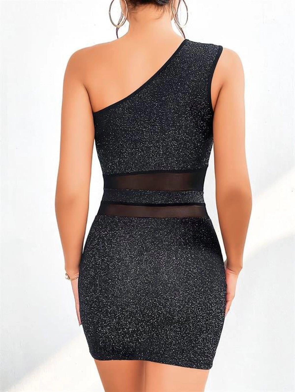 Özel Tasarım Siyah Tek Omuz Dekolteli Işıltılı Fantezi Mini Club Elbisesi, geceye damga vurmak isteyenler için tasarlandı. Tek omuz dekoltesiyle güçlü ve modern bir duruş sunarken, ışıldayan dokusu sayesinde her adımda etkileyici bir parlaklık yaratır.