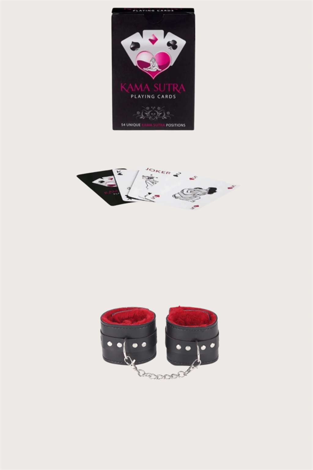 Will Like Sexy Görselli Oyun Kartı Kama Sutra Siyah Kırmızı Kelepçe Set