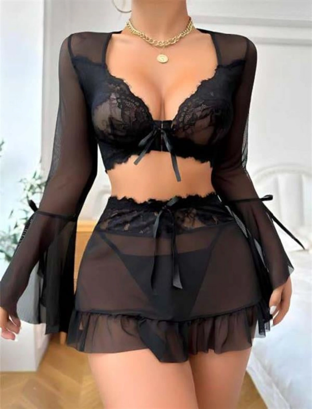 'Aria's Closet Siyah Dantelli Etekli Fantezi Tül Bolero Sütyen Takım', özgünlük ve zarafeti bir arada sunar. Bu takım, cesur ve şık detaylarıyla dikkat çeker. Siyah dantel detayları, tül bolero ve etekli tasarımıyla göz alıcı bir görünüm sunar. Bu takım, özel anlarınıza romantizm ve tutku katar. Ayrıca, rahat ve esnek yapısıyla kullanım kolaylığı sağlar. Aria's Closet'un özel tasarımı olan bu takım, her kadının gardırobunda olması gereken bir parçadır. Dantelli detayları ve zarif kesimiyle dikkat çeken bu takım, sizleri bekliyor. Bu takım ile özel anlarınıza unutulmaz bir dokunuş katın ve kendinizi özel hissedin.