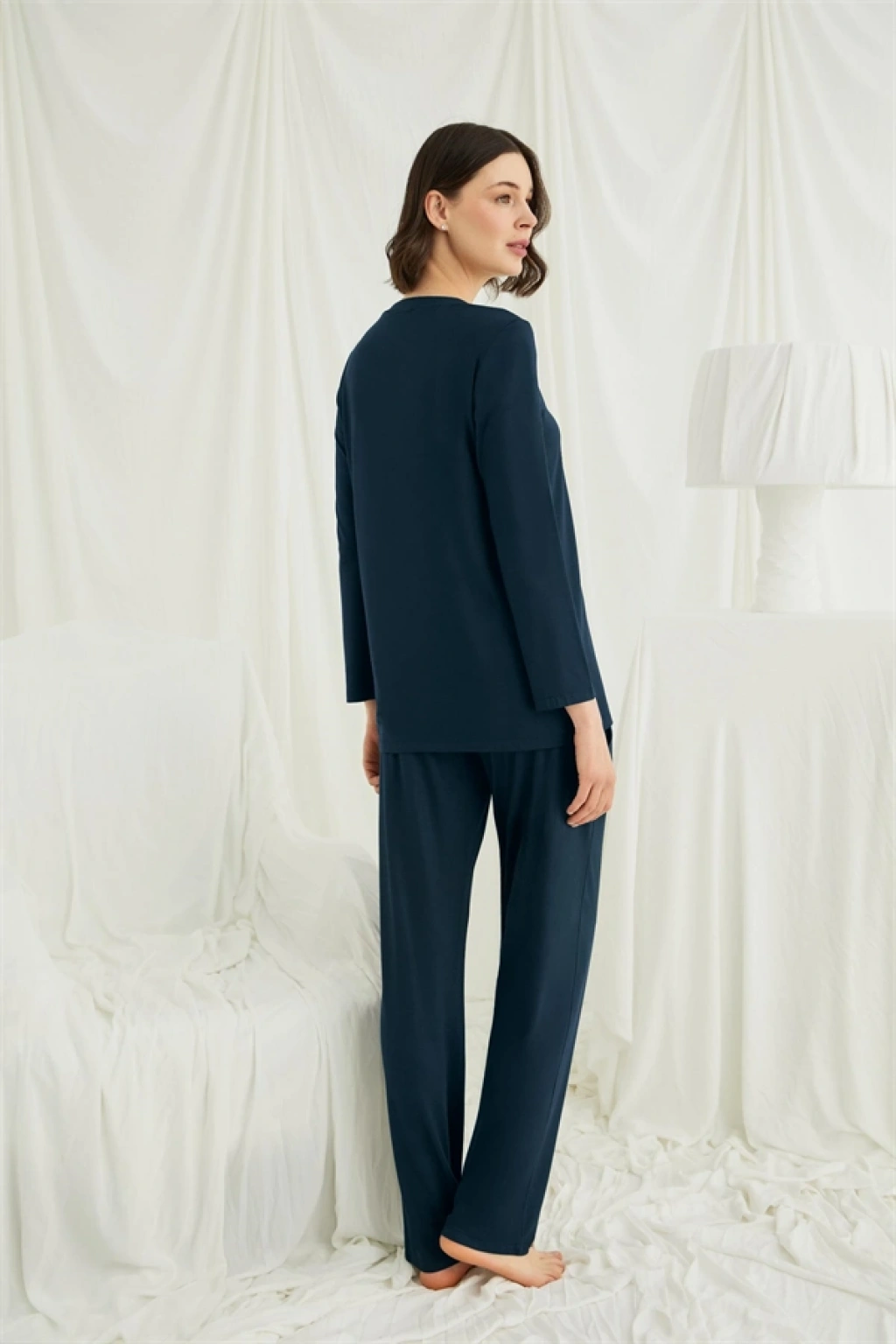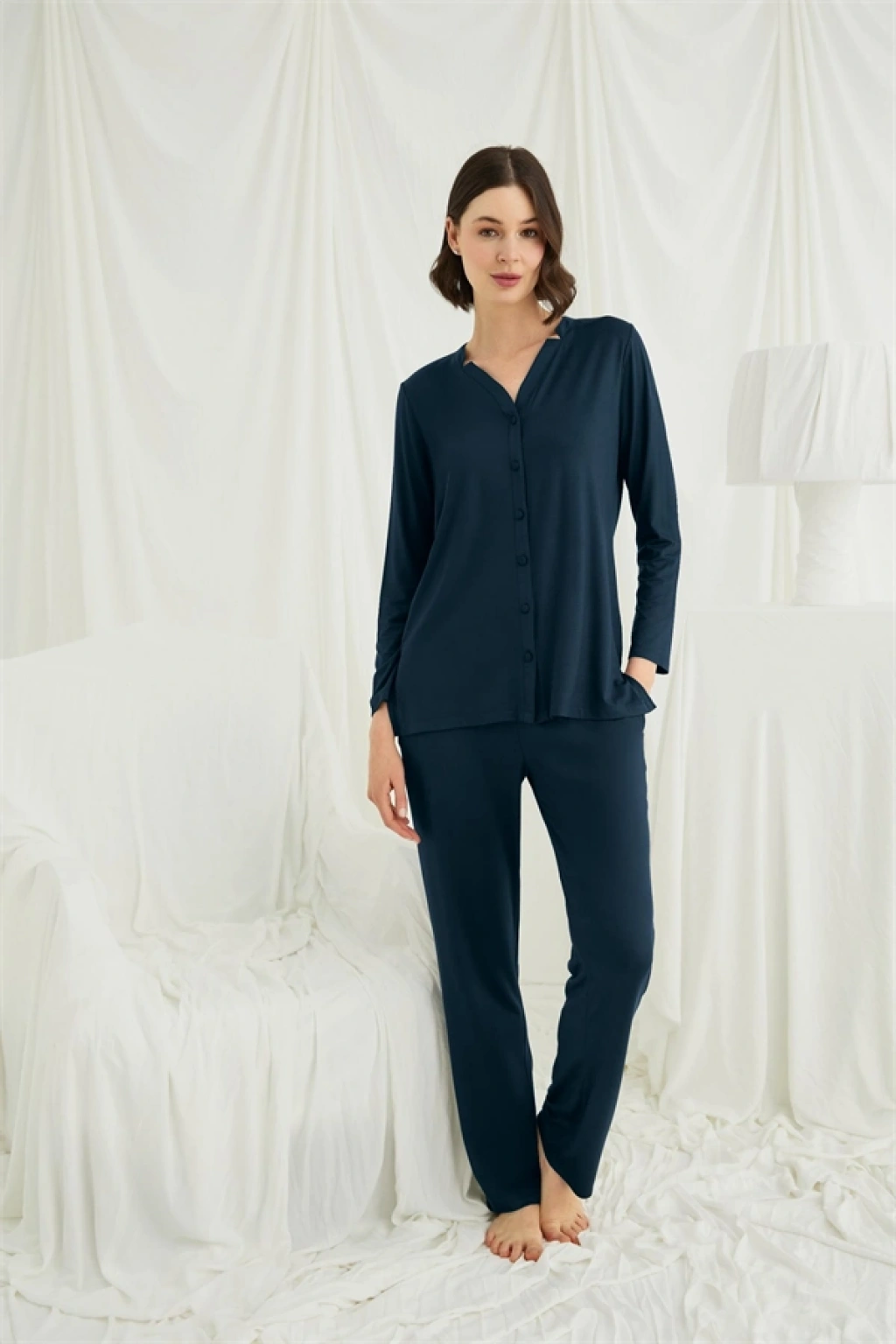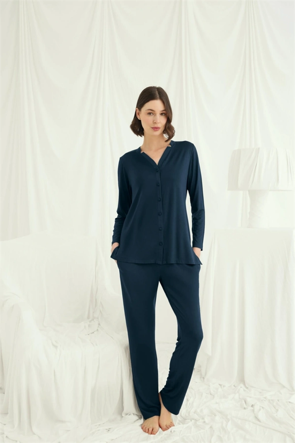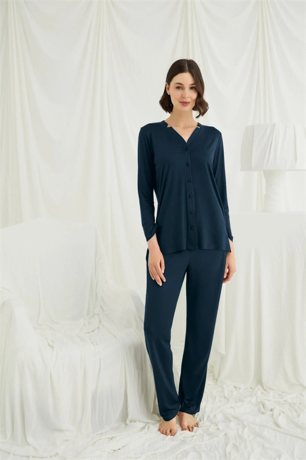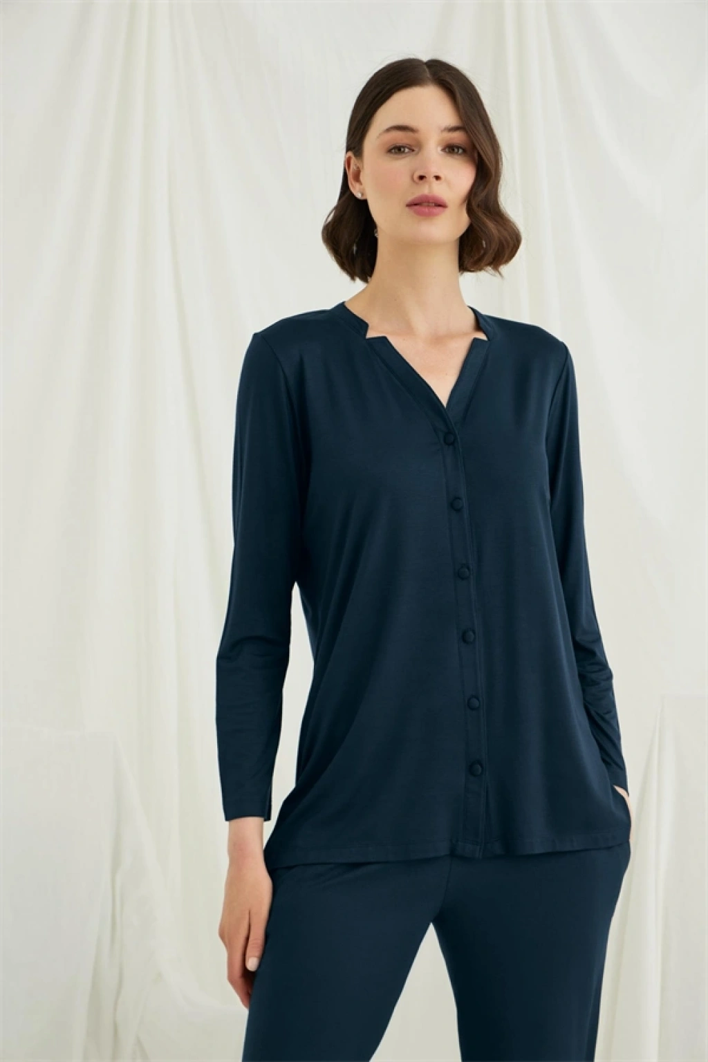 Will Like Uzun Kollu Boydan Düğmeli V Yaka Pijama Takımı