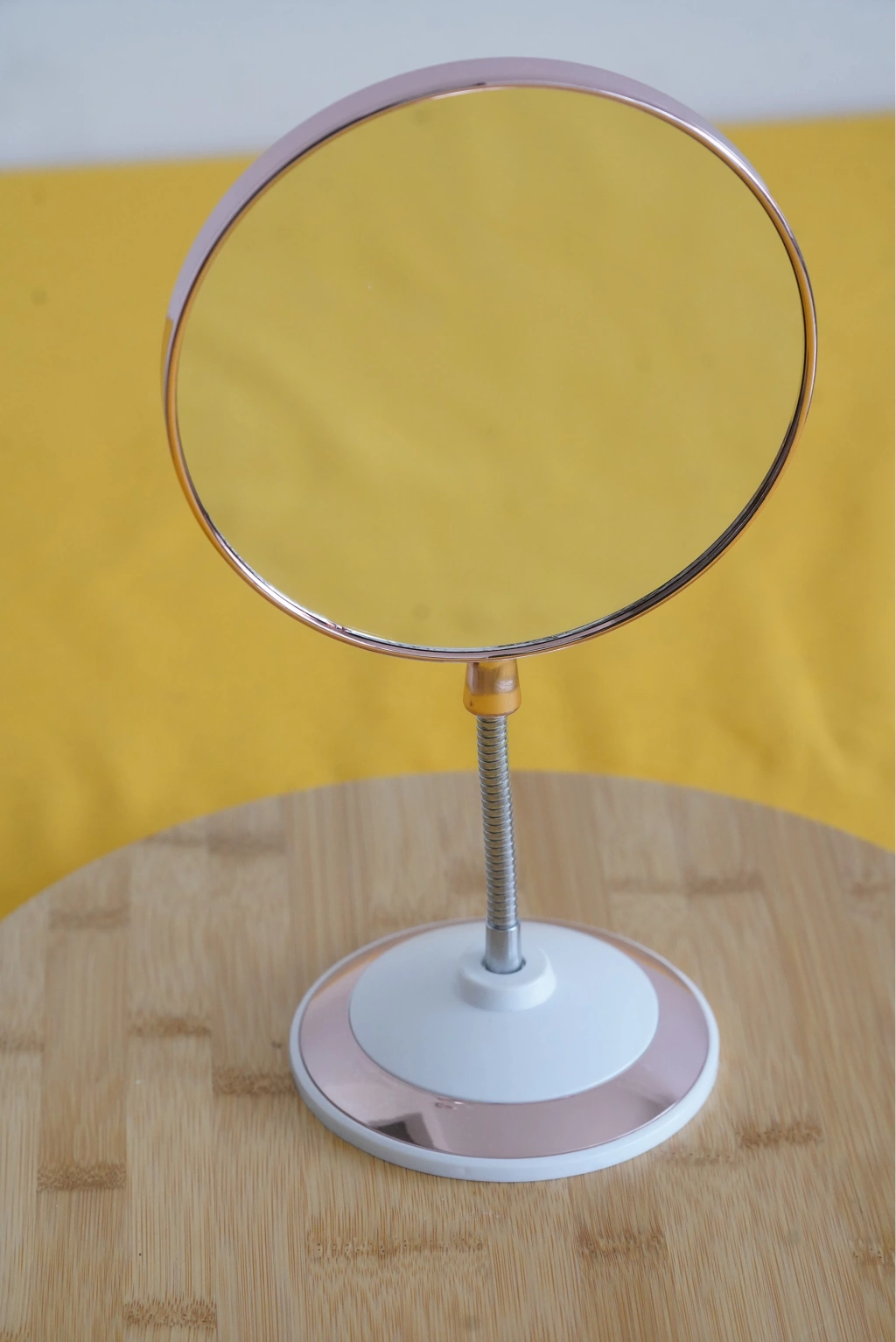 Yuvarlak Spiralli Makyaj Aynası Büyüteçli Pembe